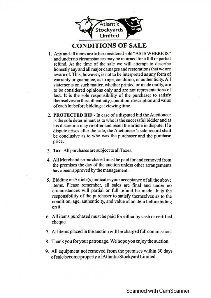 - Terms of Auction: CASH, CERTIFIED CHEQUE or E-TRANSFER